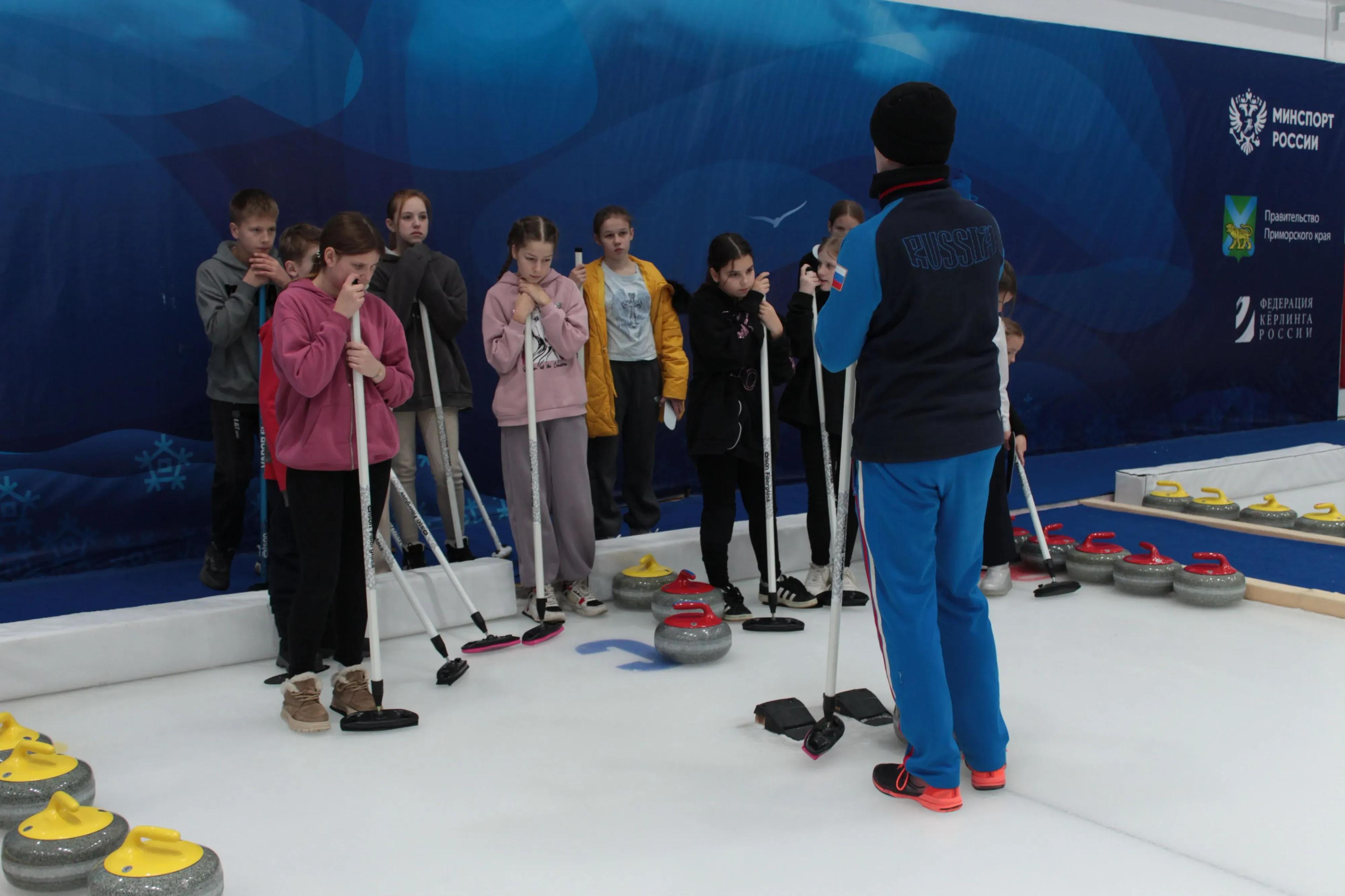 The Tourist Information Center of the Primorsky Territory (Visit Primorye) organized an excursion to the complex for students of the 5G class of the MBOU "SOSH No6" (New, Nadezhdinsky District): schoolchildren were waiting for a story about curling as an Olympic sport, as well as a two-hour training. At the beginning of the training, the children were waiting for a detailed briefing: what the equipment is called and how to use it correctly, what clothes and shoes should be and, of course, discussed the rules of the game. Do not forget about the mandatory warm-up!