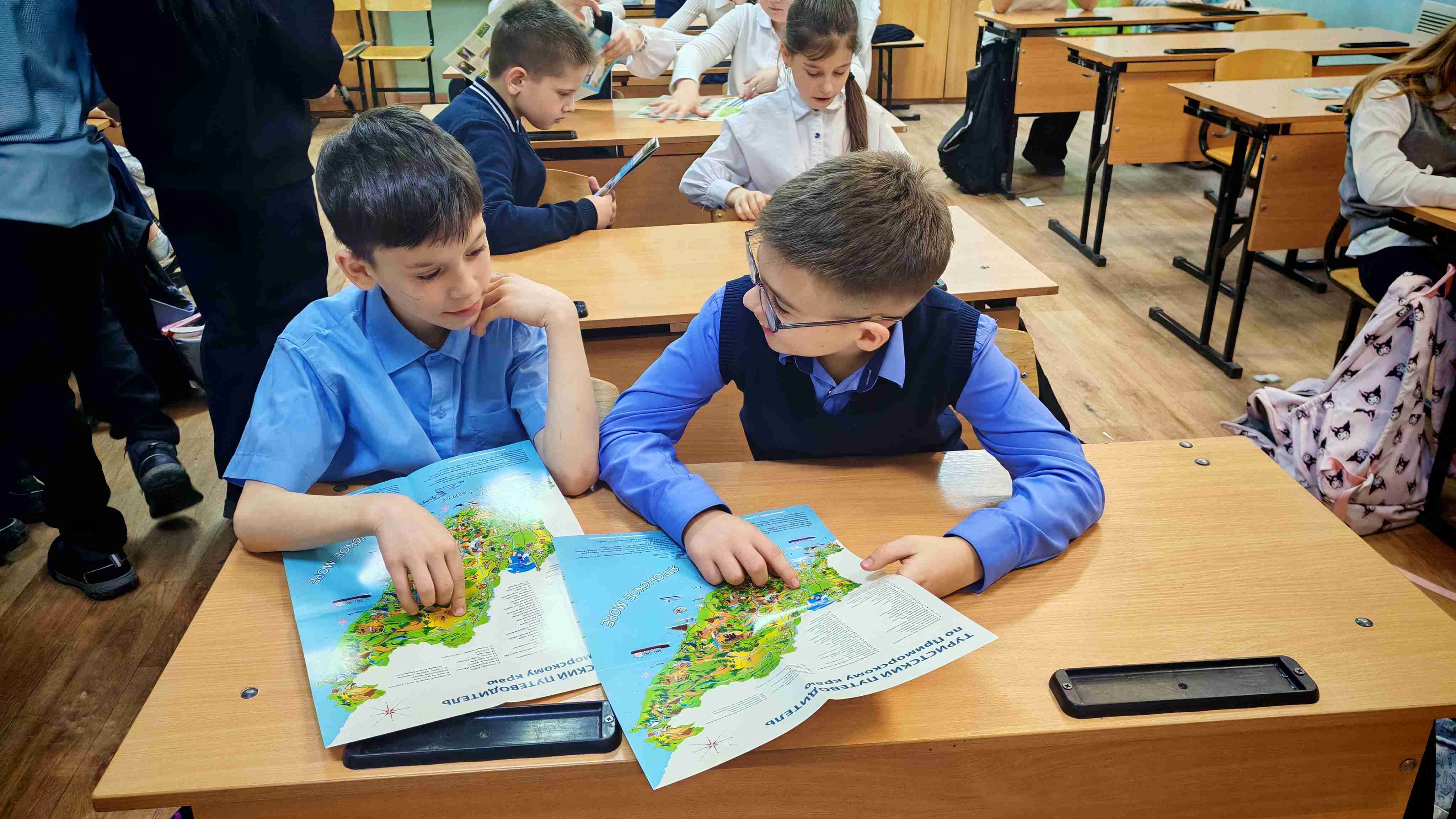 The first part was devoted to traveling around the region. The children talked about the uniqueness of the Primorsky Territory: the sea and the taiga coexist here, rare animals live, and the climate creates special natural contrasts. Students learned about Vladimir Arsenyev – how his childhood dream of distant travels turned into serious expeditions, and travel notes became books known all over the world. The story of Arsenyev’s friendship with the guide Dersu Uzala was especially echoed – an example of respect for nature and people, which today sounds very modern.