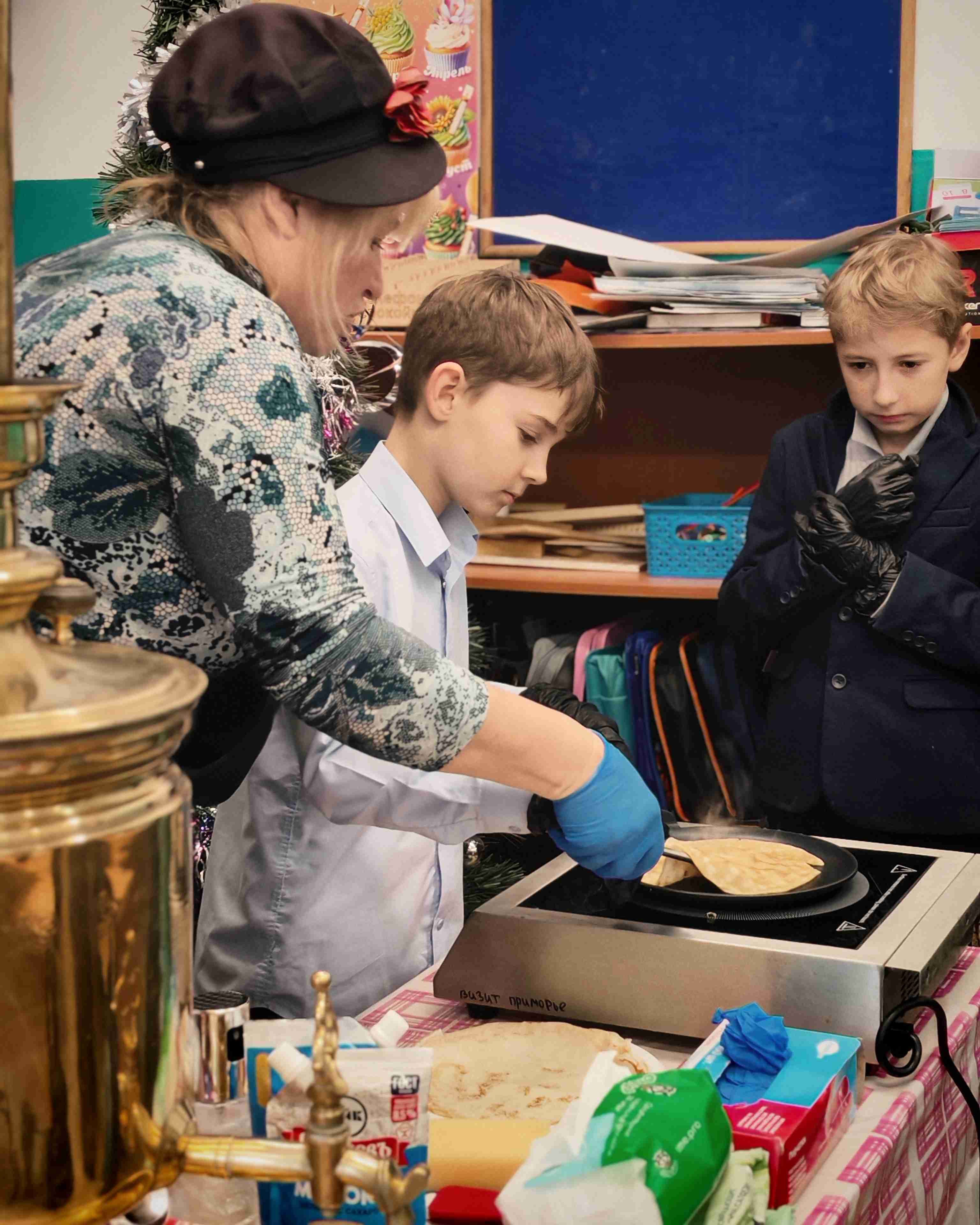 А 17 декабря гостеприимный «Русский Самовар» провёл мастер-класс для учеников 3Г класса школы №80. Мероприятие началось с рассказа экскурсовода Национального центра «Россия» в Приморском крае Елены Людницкой о традициях чаепития и истории самовара. Затем ребята вместе с мастерами пекли блины и заваривали чай в настоящем самоваре. Дети не только попробовали свои угощения, но и узнали о старинных русских обычаях и символике самовара как центра семейного стола.