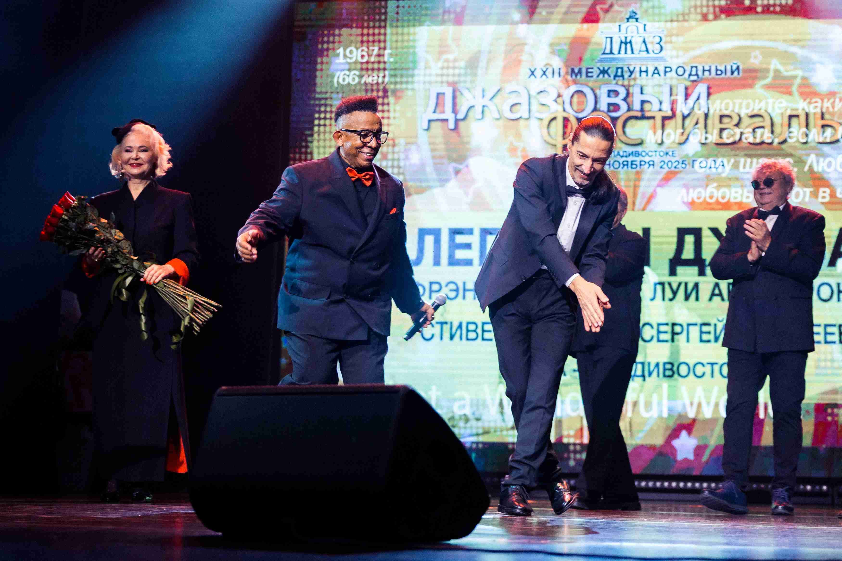 В Приморской краевой филармонии история мирового джаза ожила в уникальном для России формате. В рамках XXII Международного джазового фестиваля с аншлагом прошёл авторский проект Виктории Митчелл (Колитенко) — трибьют-концерт «Легенды Джаза», посвящённый двум титанам музыки — Фрэнку Синатре и Луи Армстронгу. Более 600 зрителей стали участниками не просто концерта, а глубокого иммерсивного путешествия в Золотую эпоху джаза.